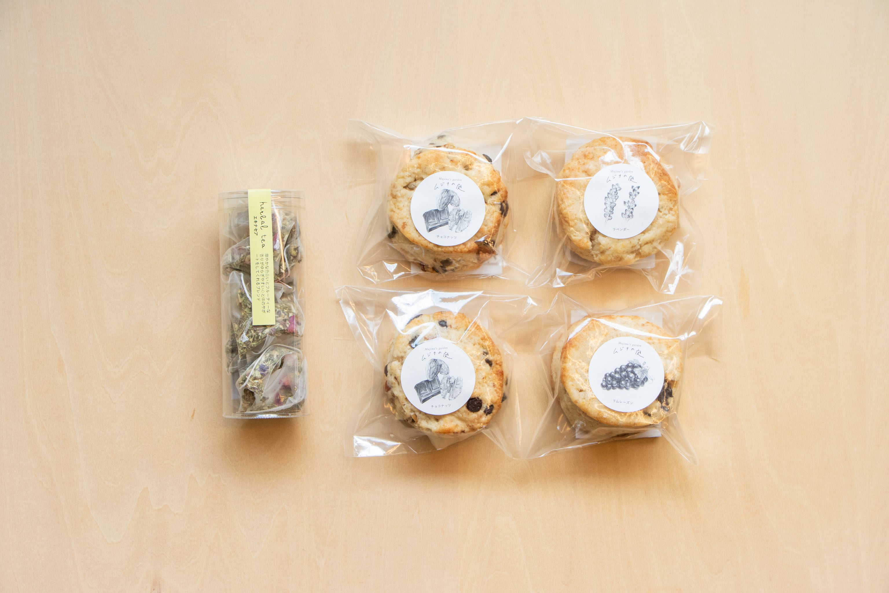 人気No1アイテムの定番スコーン4個とハーブティーを、オリジナルギフトボックスに詰め合わせたギフトセットです。