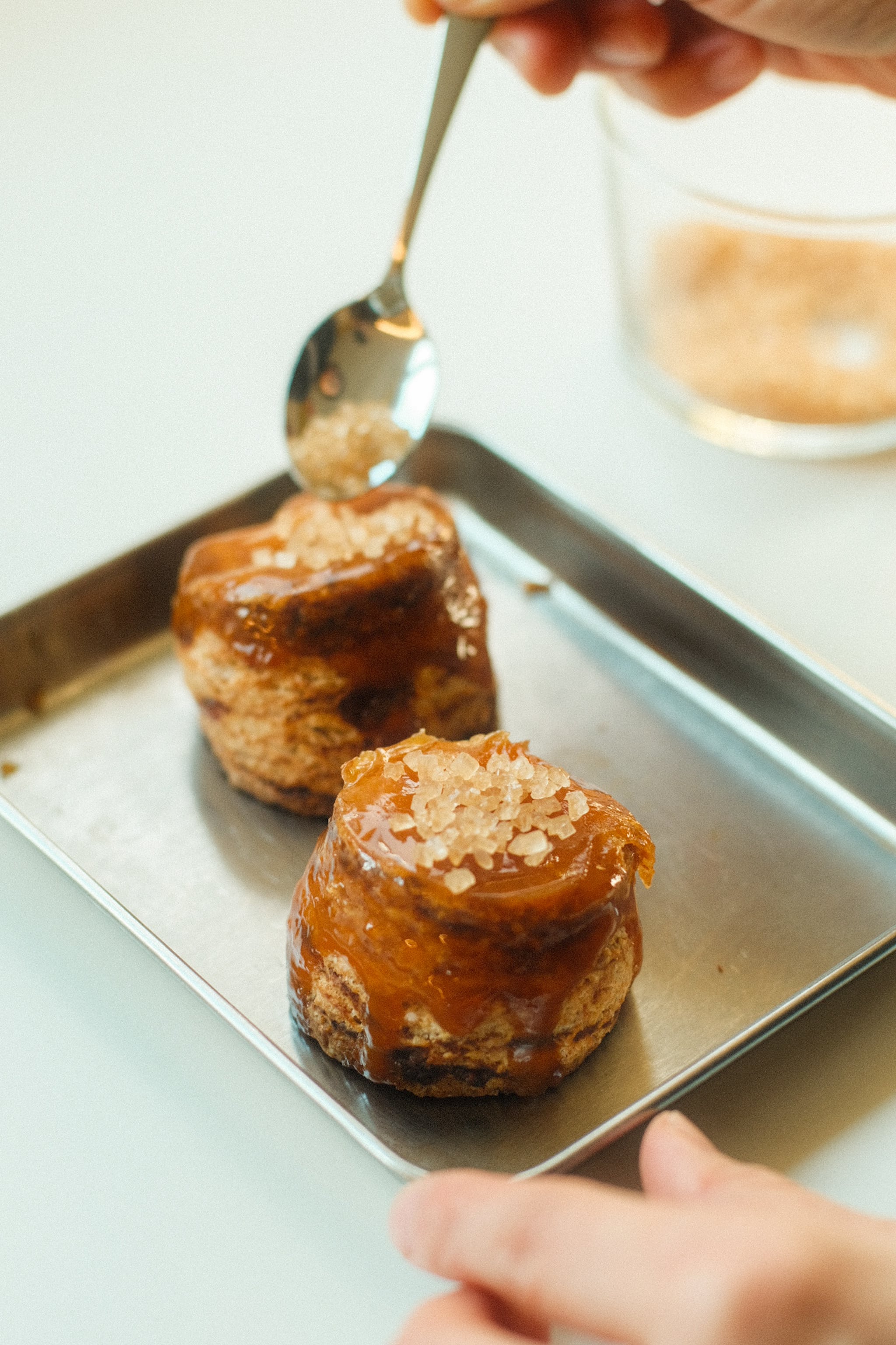 電子レンジ(600w)で10秒温めた後、オーブンまたはトースターで約1分半~2分ほど温めると、表面はさっくり、中はふんわりと焼き立てのような美味しさがよみがえります。